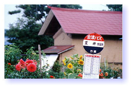 [Comment] 夏休み田舎でのんびりしたいと思い、一週間ぐらい奥会津の親戚の家に逗留した。会津の田舎はそれは絵に描いたような「日本の正しい農村風景」が広がっており、夕方時、駄犬といっしょに散歩なぞしていると、とても心が和む。毎日、鄙びた共同湯や湖沼、陶芸の窯元や古刹などをまわって過ごしていた。この絵は自転車に乗って近くの共同湯に向かう時の一枚である。 [もどる]