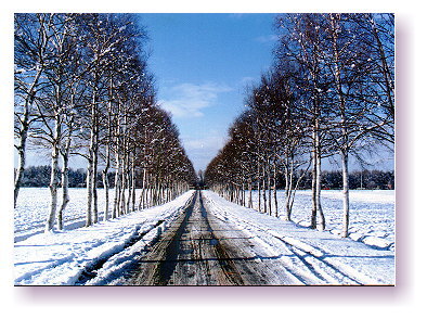 [Comment] 北海道の真冬の晴れ日は美しい。天空に抜ける青と大地に深雪の純白、そして蒼のコントラスト。そこに一点透視法で白樺並木が収束してゆく。透明感溢れる光の神々しい世界に暫時息をのみ、シャッターをレリーズした。 [もどる]